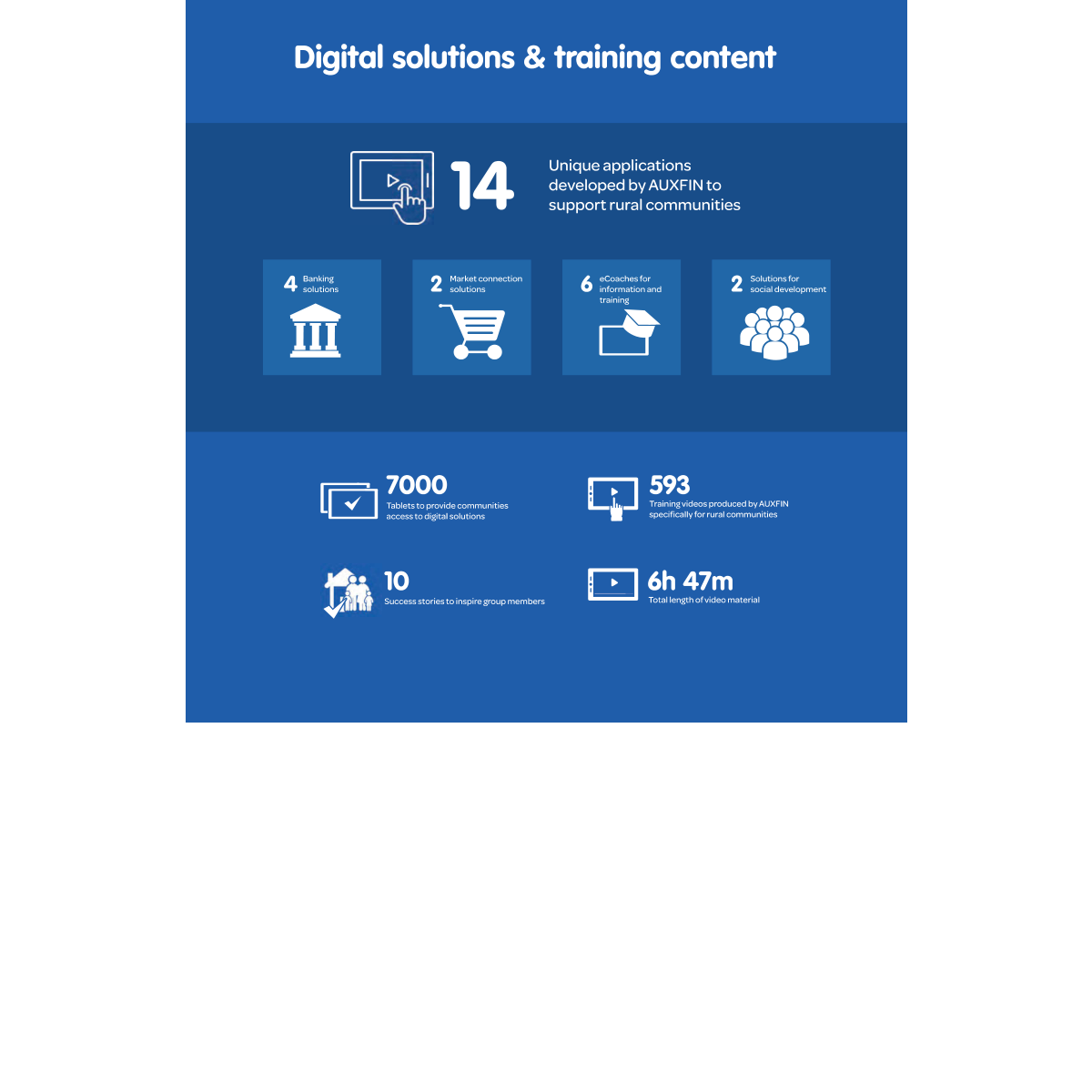 In Burundi, only 6% of the population uses the internet, ranking as the lowest internet penetration rate worldwide. AUXFIN is changing this number quickly by offering digital technologies to the rural population.In 2022 AUXFIN Burundi has succeeded in reaching half a million people on a regular basis with digital solutions that contribute to their development.